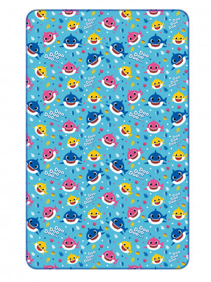 deken Baby Shark junior 150 x 95 cm katoen blauw