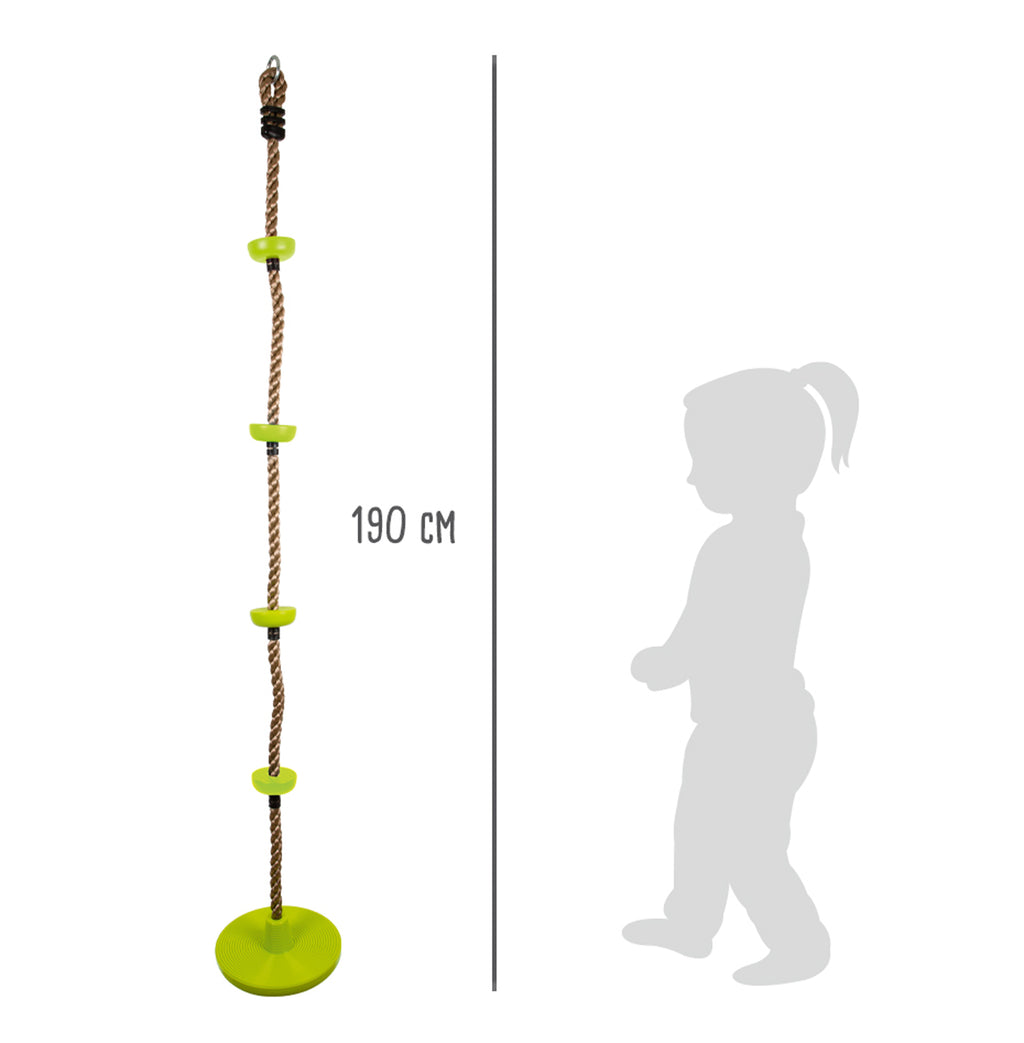 Dit multifunctionele klimtouw met natuurlijke touwlook is op 4 plaatsen voorzien van opstapjes van robuust, felgekleurd kunststof en biedt bovendien schommelplezier dankzij de schijfschommel. Het geribbelde oppervlak van de treden en de groeven op de schommel zorgen voor extra veiligheid! Wordt geleverd met luchtkussen in de dubbelwandige zitting en een ring voor montage.