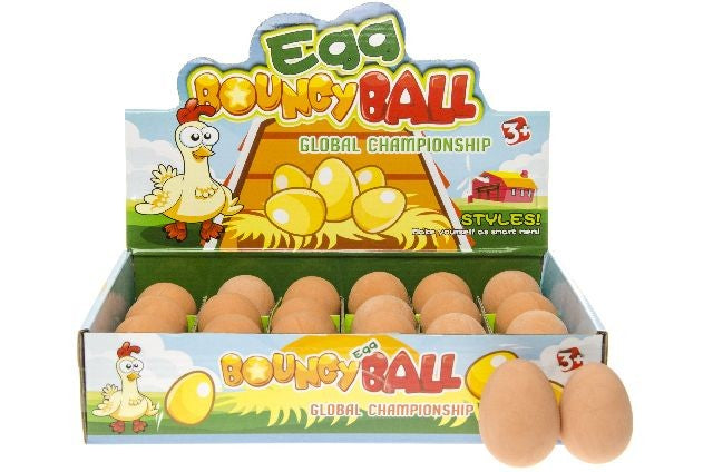 Het lijkt een echt ei, maar maar laat je het ei vallen en dan stuitert deze alle kanten op. leuk om grappen mee uit te halen. Ook te gebruiken in een speelkeuken. ca 52 mm hoog.