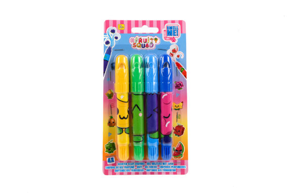 De set bevat 4 krijtjes, elk met een bijpassende fruitige geur. Deze Fruitysquad waskrijtjes kun je gebruiken om de mooiste tekeningen te maken. Deze wascokrijtjes zijn uitgevoerd in vier verschillende kleuren en geuren. Elk krijtje heeft zijn eigen figuurtje, passend bij de geur van het krijtje. Op de verpakking zit een sticker waarmee je de geuren kan proberen.