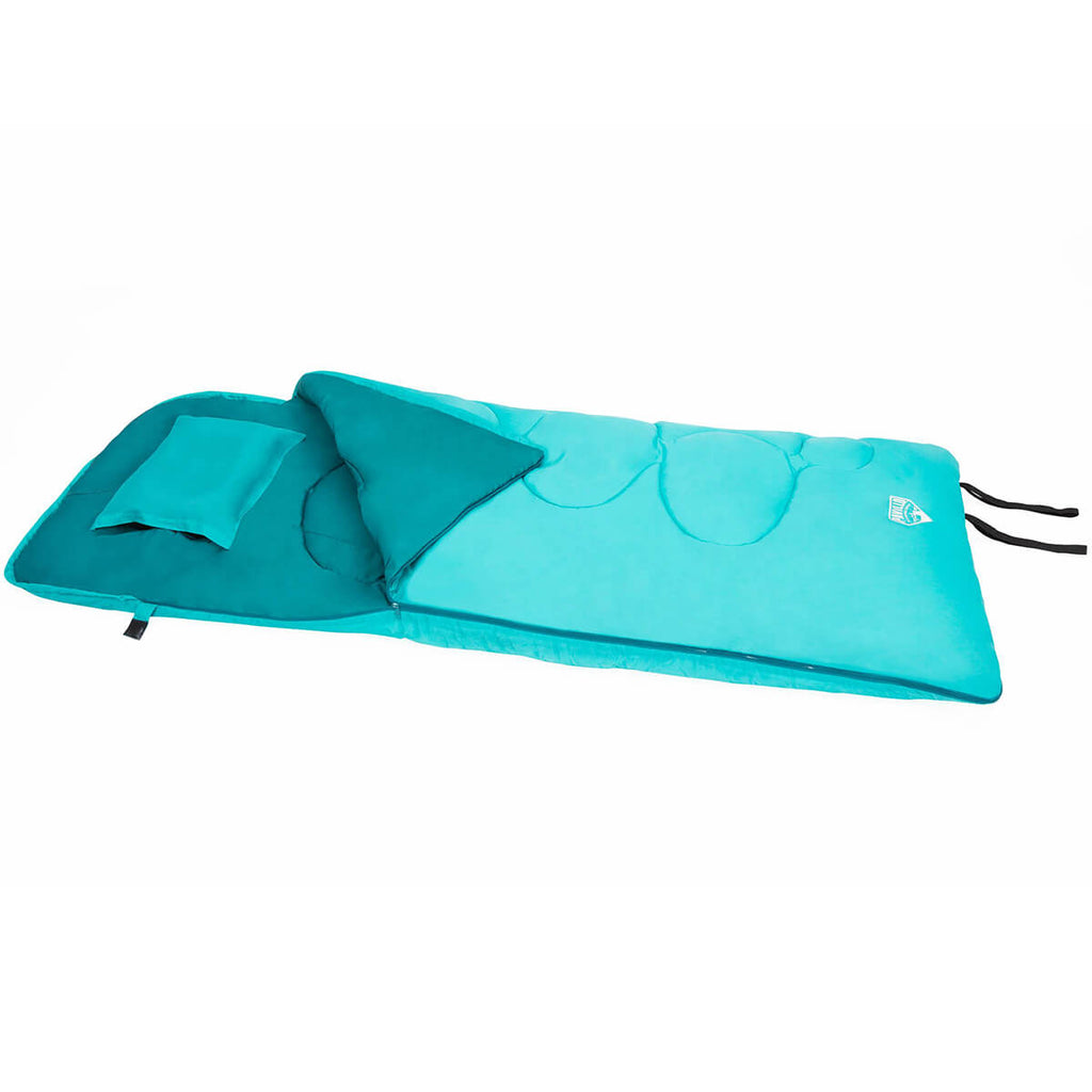 Comfortabele slaapzak in dekenmodel, ideaal voor de zomer en voorjaar. Ruim formaat (205 x 90 cm) en voorzien van een opblaasbaar kussen. Lichtgewicht en scherp geprijsd, met S-vormig stiksel. Comforttemperatuur: 4°-8°C.