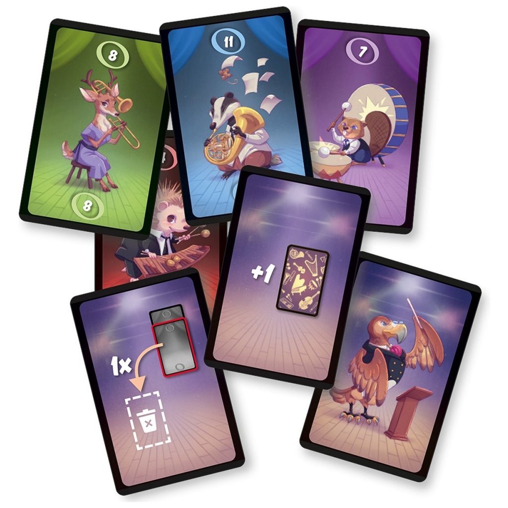 Als beroemdedirigentben je voortdurend op zoek naar talent. Je hebt echter sterkevoorkeurenwat betreft de omvang van jouw orkest. Je wilt uitsluitendsolistenofkwartettendirigeren. In dit spel probeer je daarom dejuistemuzikanten bij elkaar te zoeken.Kun jij het meest uitgebreide concert organiseren? Elke beurt neem je een muzikantenkaart van de gedekte stapel, die je naast één van de dirigentkaarten legt, of je neemt een dirigentkaart inclusief de daarbij gelegde muzikantenkaarten en legt deze voor je neer. In het laatste geval is de ronde voor jou voorbij. Je probeert zo bepaalde muzikanten te verzamelen. Uitsluitend solisten en setjes van 4 muzikanten met hetzelfde nummer leveren punten op. Wie aan het einde van het spel de meeste punten heeft, wint het spel. Audition is een tactisch kaartspelvan eigen makelij. De spelregels zijnzeer eenvoudig,maar detactische mogelijkhedenzijn enorm. Verder bevat het spelvariantenmet onder andereactiekaarten om het nog uitdagender te maken.