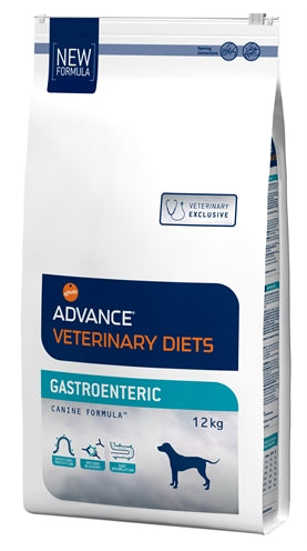 ADVANCE VETERINARY DIETS GASTROENTERIC is een compleet (volledig) dieetproduct voor puppy's en volwassen honden, bereid met goed verteerbare ingrediënten, een laag vetgehalte en een verhoogd gehalte aan natrium en kalium om bepaalde gastro-intestinale problemen te verlichten en te helpen bij gevallen van exocriene pancreasinsufficiëntie. licht verteerbare formule vergemakkelijkt de opname van essentiële voedingsstoffen.