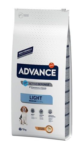 Advance Medium LIght 12 kg is een smakelijk hondenvoerspeciaal gemaakt voor honden van middelgrote rassen (vanaf 10 kg) met (het risico op) overgewicht. Dit smakelijke voer van Advance is gemaakt op basis van kip en rijst en speciaal samengesteld voor honden met overgewicht op het risico daarop. Het voer heeft een formule met weinig vet en veel eiwit; zo help je het gewicht van jouw hond te controleren zonder dat er spiermassa verloren gaat. Door het hoge vezelgehalte voelt jouw hond zich verzadigd en de samenstelling met kip en rijst zorgt voor een goede spijsvertering. Gemaakt zonder kunstmatige conservingsmiddelen of kleurstoffen! De brokjes zijn speciaal aangepast aan het formaat van de hond en helpen een gezond gebit te ondersteunen.