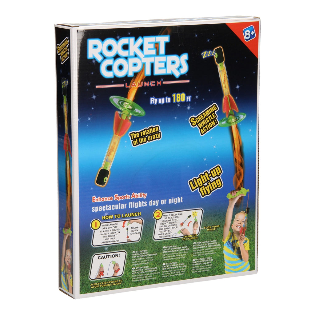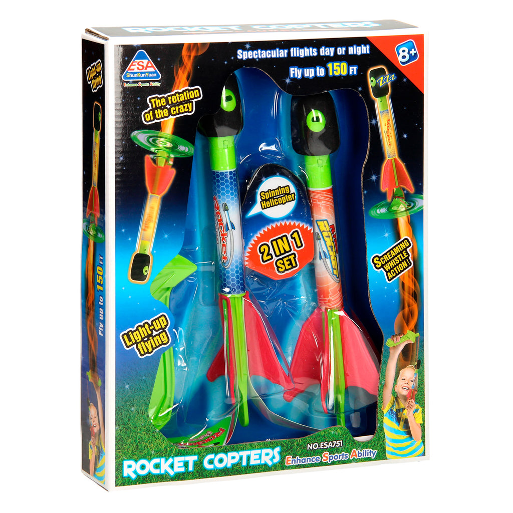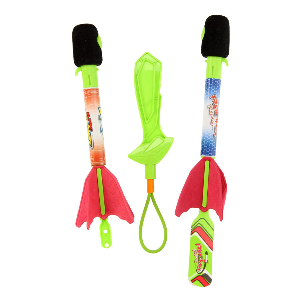 Haak de pijl aan de boog en pang, daar schiet de pijl de lucht in. De 2 Afschietpijlen met Licht hebben een lengte van 26 centimeter en als je het knopje op 'aan' zet, dan geven ze licht in het donker! De pijlen maken geluid als ze omhoog schieten en het onderste deel gaat draaien. Schiet de Afschietpijlen met Licht buitenshuis af, want ze kunnen erg hoog de lucht in schieten (meer dan 40 meter!). Werkt op 4 knoopcelbatterijen (inbegrepen).