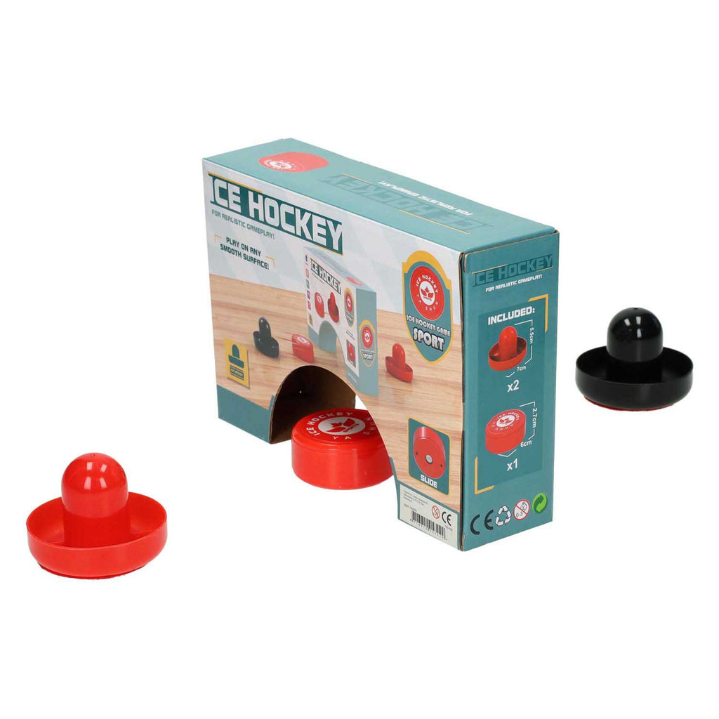 Inhoud: 2x hockeyschuiver, 1x hockeypuck.