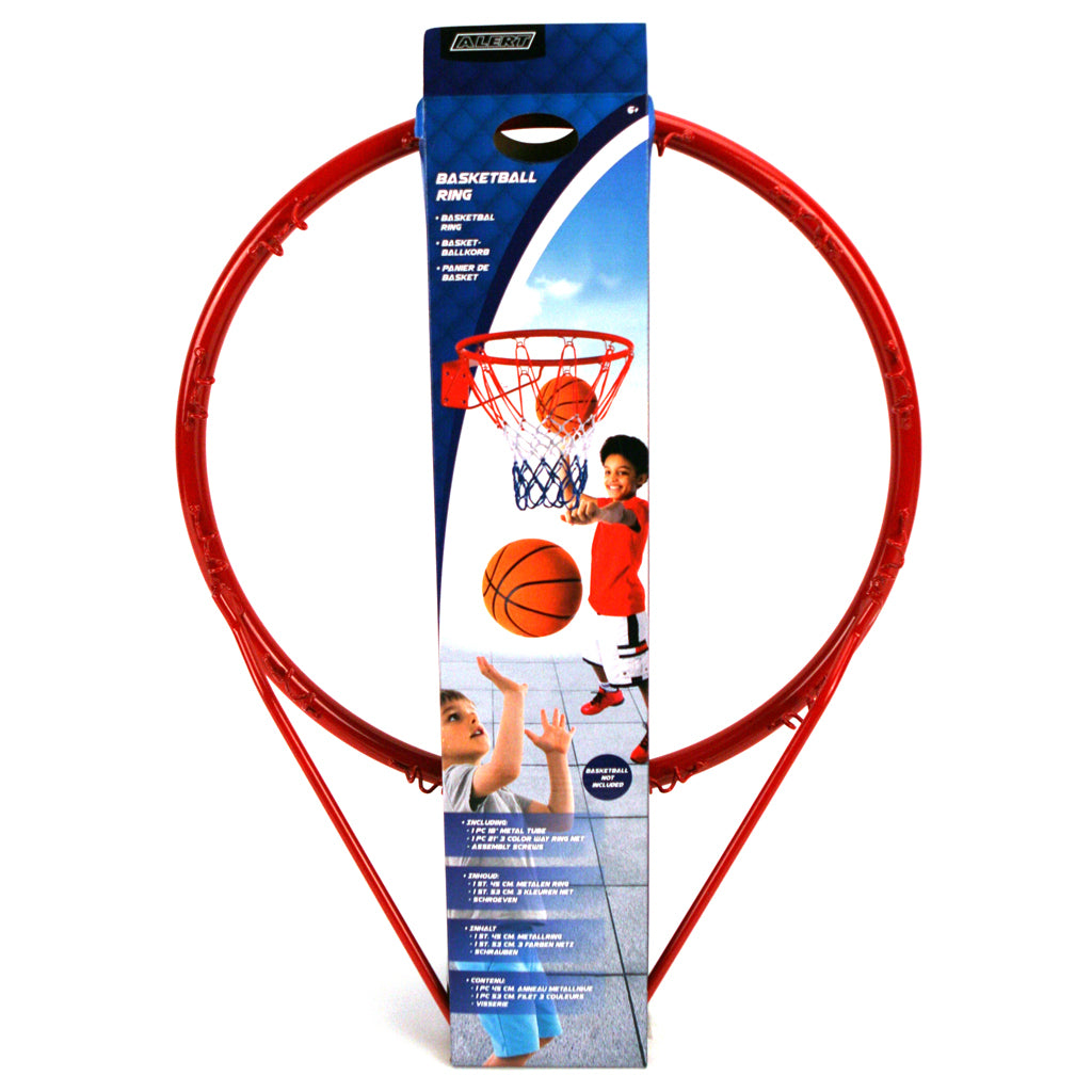 Hang deze basketbalring met net op en speel een potje basketbal! Speel een tegen een of haal twee ringen, plaats ze op een afstand tegenover elkaar en speel team tegen team. Maar je kan ook prima je skills oefenen. Dribbel, spring en dunk! De metalen heeft een diameter van 45 cm en is makkelijk te bevestigen met de bijgeleverde schroefjes. Maak het netje erin vast en je bent klaar om te spelen!