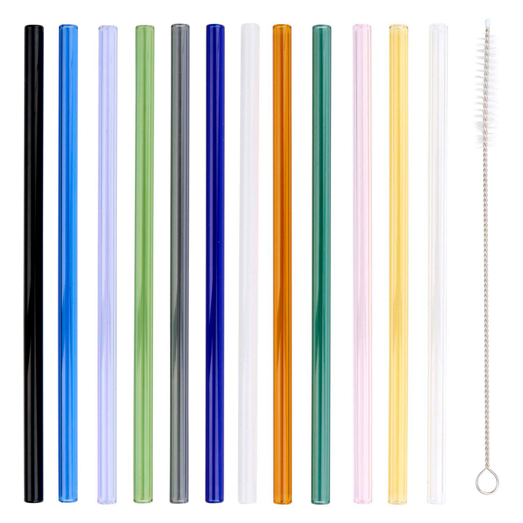 Set van 13 borosilicate glas rietjes, inclusief schoonmaakborsteltje. 20 cm lang en Ø0,8 cm.