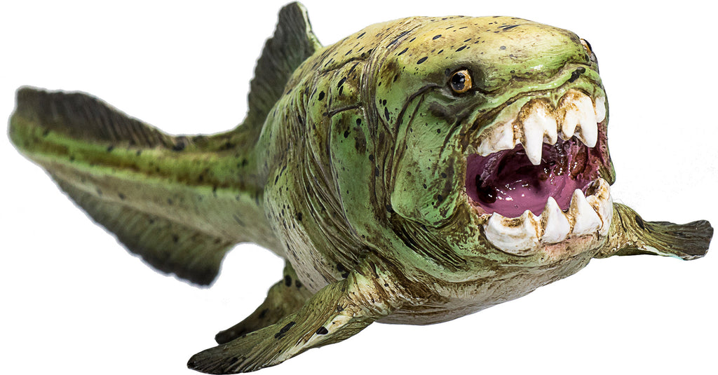Dunkleosteus, soms beschreven als de Tyrannosaurus van de zeeën, was een van de grootste gepantserde vissen. Het was zo groot als een olifant en een wrede jager in de ondiepe zeeën waarin het leefde.