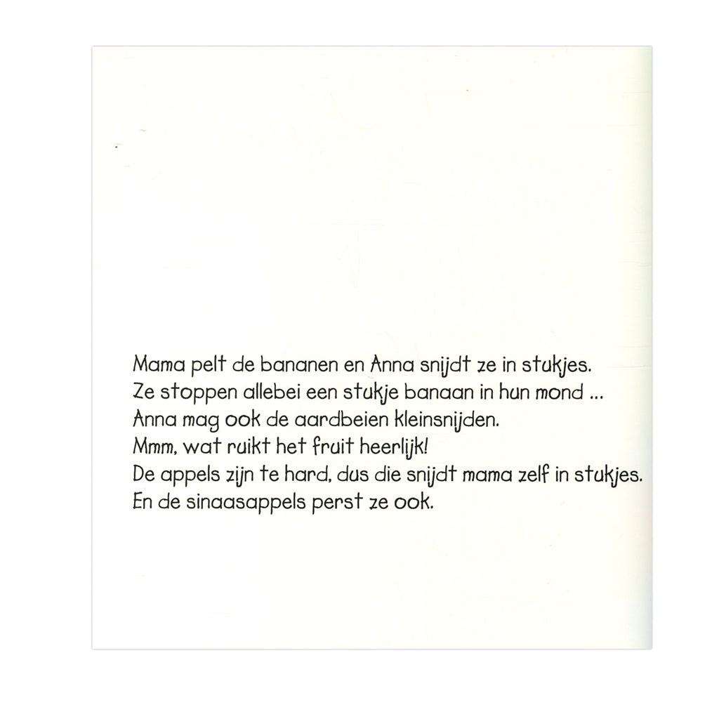 Anna gaat met mama naar de markt om fruit te kopen. Anna is dol op fruit en fruitdrankjes. Ze kopen appels, sinaasappels, bananen, aardbeien