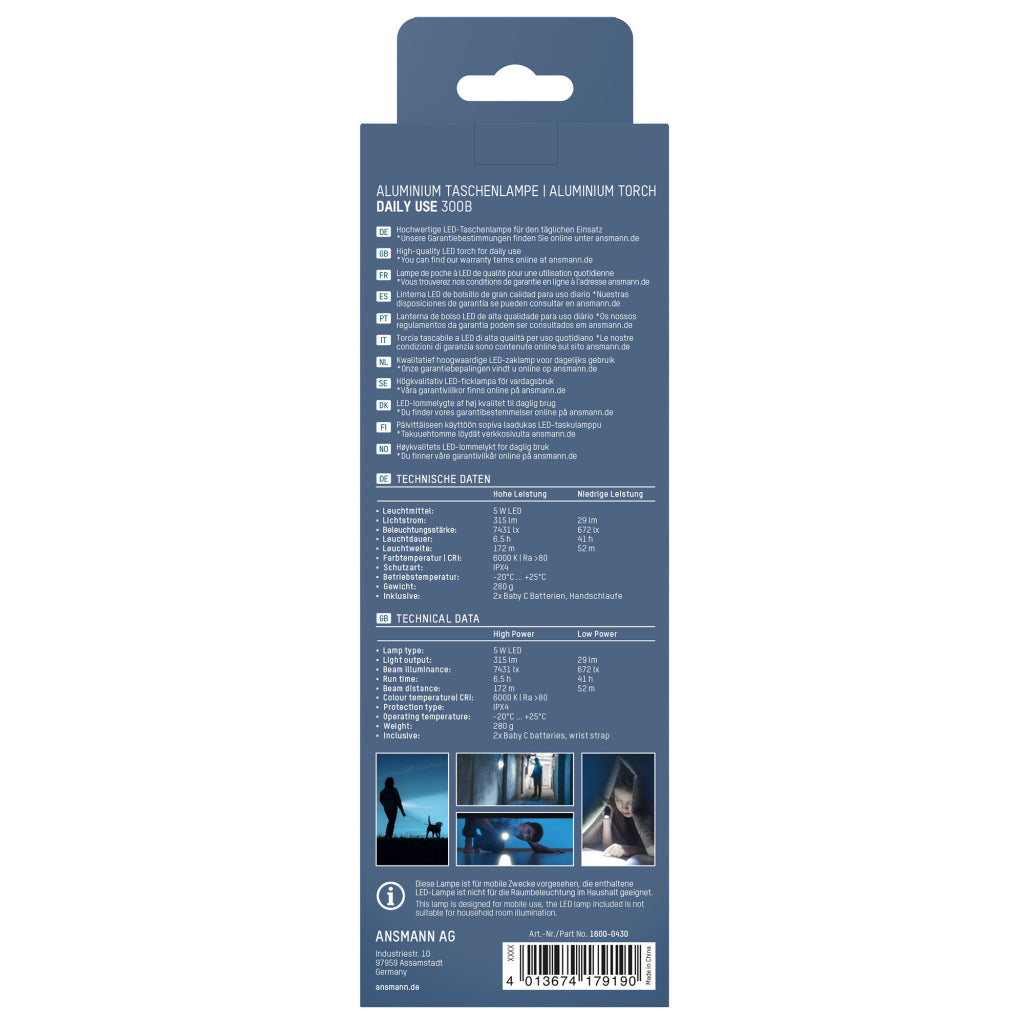 - Kan in twee lichtstanden bediend worden. Met 315 lumen heeft de zaklamp een bereik van 172 meter en brandtijd van ca. 6,5 uur, met de lage stand brandt hij tot 41 uur