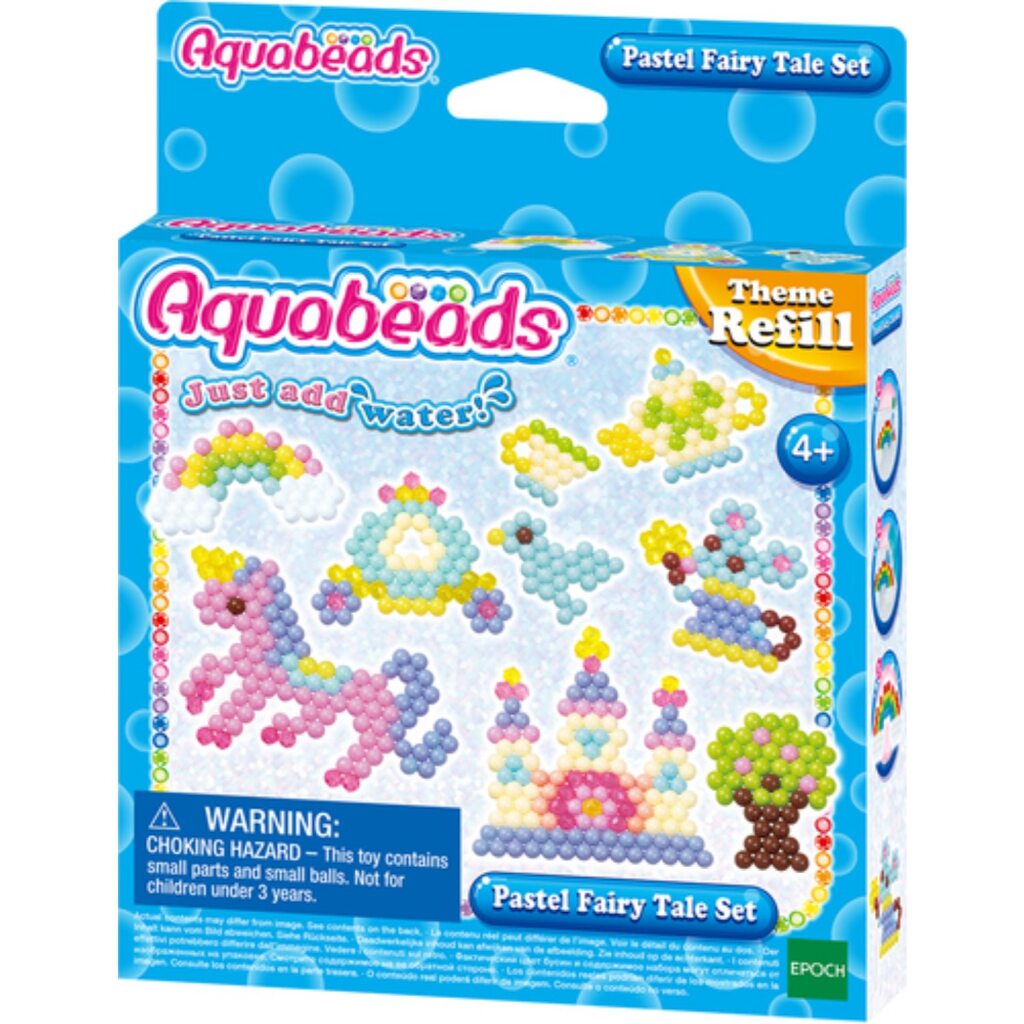 DeAquabeads pastel sprookjesset is de beste set voor liefhebbers van magische sprookjes. Kinderen kunneneen eenhoorn, een kasteel, een koets en een witte muis tovenaar maken! Wanneerze klaar zijn met ontwerpen, kunnen ze water op hun creatie sprayen, zodat de parels aan elkaar vast plakken. Geschikt voor kinderen van4 jaar.