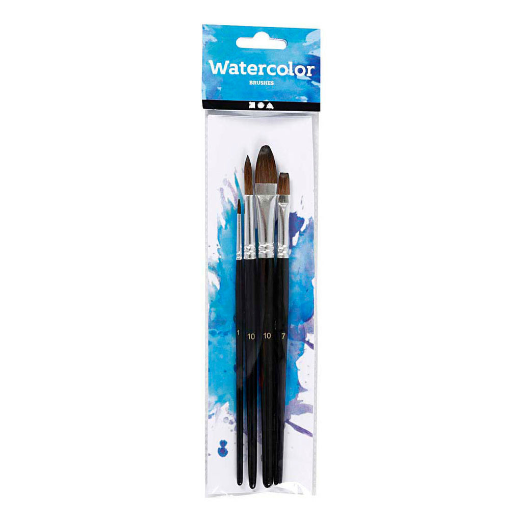 Speciale penselen van ponyhaar die door hun hoge absorptievermogen bijzonder geschikt zijn voor aquarel / waterverven. Set van drie verschillende soorten (rond, plat en zwaar/filbert).