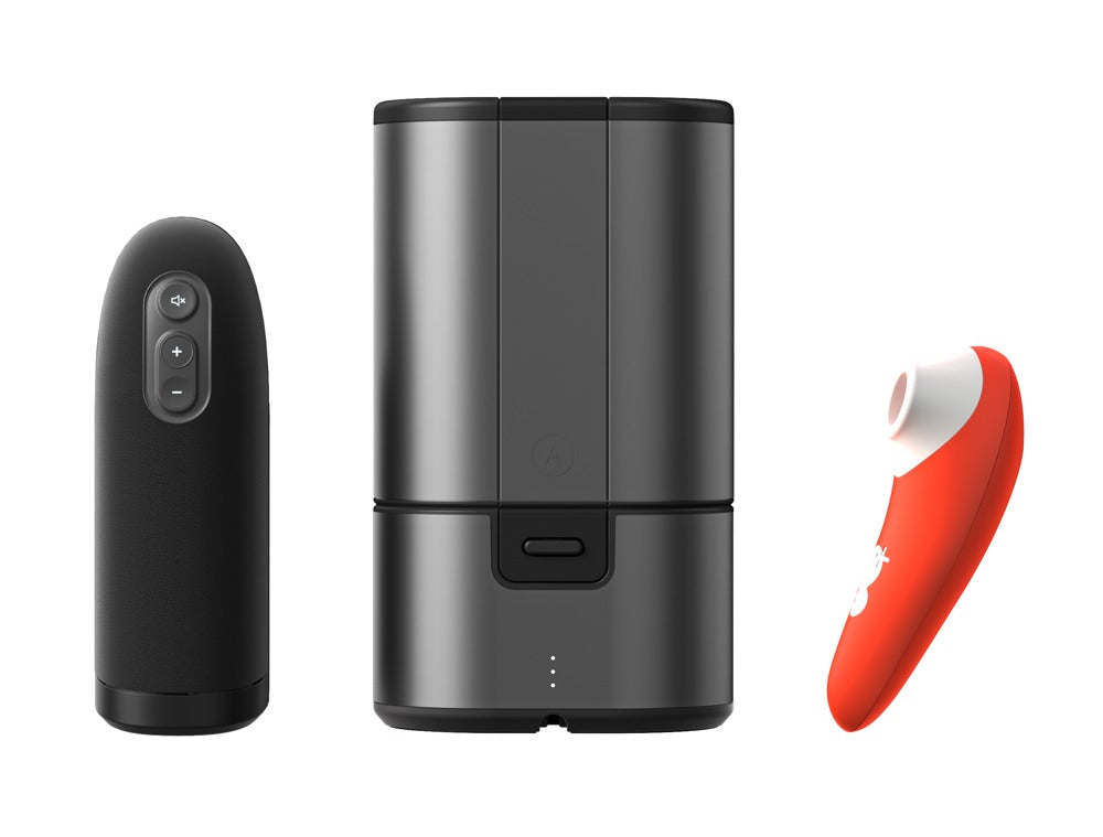 Stroker with the Pleasure Air Technology in 8 intensity settings. The penis is put inside the toy so that the frenulum is directly stimulated by the pressure waves. Comes with a discreet storage base that also works as a charging/drying station and with integrated DryTech that removes any moisture inside the masturbator using DrySticks. It has a Smart Silence function and is made out of CleanTech silicone that has hypoallergenic and medical quality. Waterproof. Includes a USB cable. Complete length 15.4 cm, width 5 cm, height 8.3 cm, inner Ø 3.3 cm. Silicone, PU, ABS.