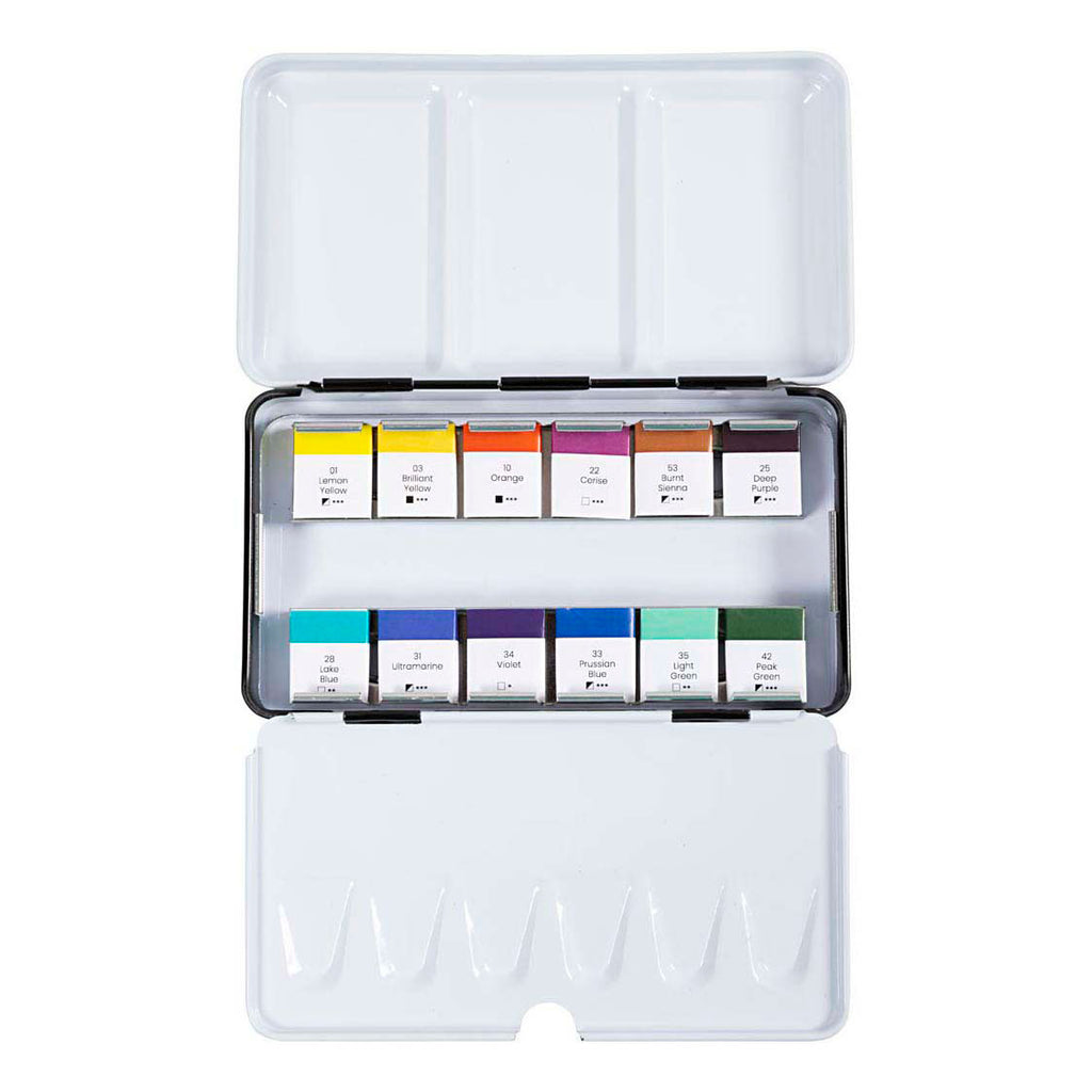 Hoogwaardige aquarelverven met een hoge pigmentconcentratie, indrukwekkende kleureigenschappen en uitstekende lichtechtheid. Eenvoudig te verwerken en geschikt voor zowel kleurintensieve als doorlopende aquarelschilderijen. Reinig de verfkwasten in water.