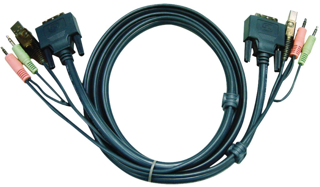 - Connectie B: 2x 3.5 mm Male, DVI-D 24+1-Pins Male, USB A Male