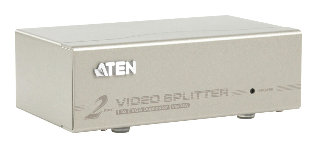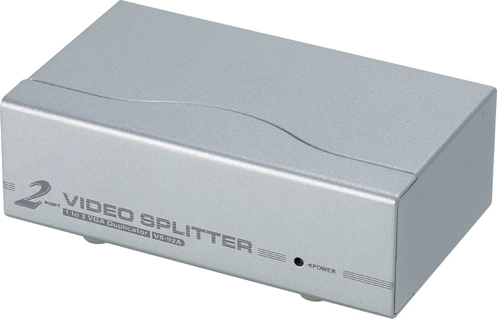 De VS92A Video splitter dupliceert en versterkt het video signal van een input naar 2 outputs. Het voorziet meer bandbreedte en video resolutie, ook het kunnen uitbreiden van de uitzend afstand tot 210' maakt het ideaal voor publieke tentoonstellingen. Daarbij kunnen de units ook gecascadeert worden, zodat het gewenst aantal monitoren gebruikt kan worden.