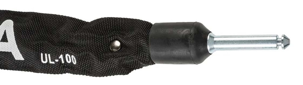 Voor extra veiligheid is het belangrijk om je fiets altijd vast te zetten aan een vast object. Zo kan een dief je fiets niet eenvoudig oppakken en meenemen naar een rustige plek om het slot open te breken. De ideale oplossing hiervoor is de ULC 100 Plug-in ketting. Met deze ketting vergrendel je zowel het ringslot als de ketting met slechts één sleutel, wat zorgt voor extra gebruiksgemak. De ULC 100 is een universele ketting en past niet alleen op de AXA Solid Plus, Defender, Victory, Block XXL en Imenso Large & X Large ringsloten, maar ook op ringsloten van andere merken. De ketting heeft een lengte van 100 cm en schakels met een diameter van 5,5 mm. De gehard stalen plug-in pin is 10 mm dik. De stevige zwarte polyester hoes voorkomt beschadigingen en beschermt je fiets tegen krassen. Productspecificaties: