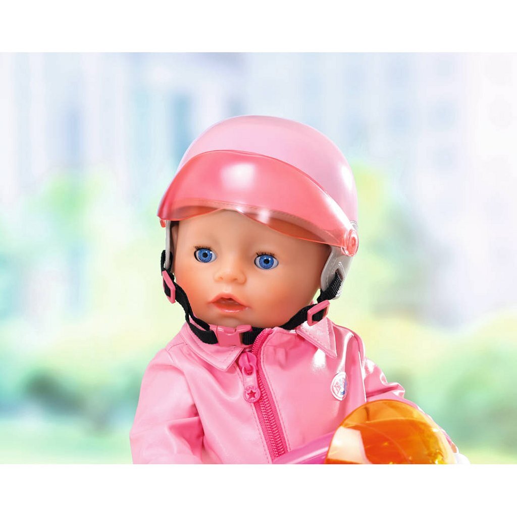 Baby Born City roze scooterhelm met verstelbaar vizier en verstelbaar riempje. Geschikte voor kinderen vanaf 3 jaar.