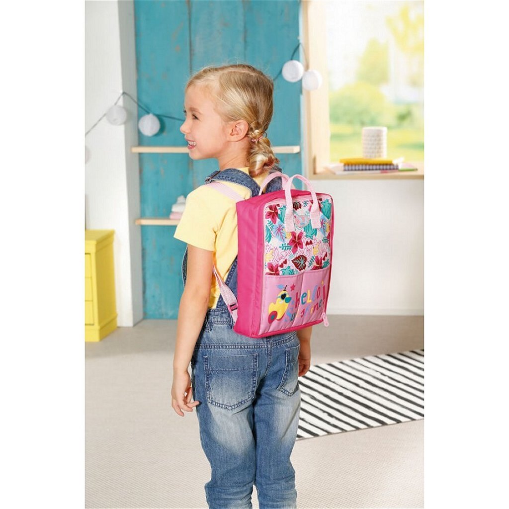 De Baby Born Holiday luierrugzak is een rugtas en verschoonmat in een. Kinderen kunnen de rugzak op hun rug dragen om BabyBorn spulletjes mee te nemen, maar ze kunnen hem ook openritsen om BabyBorn erop te leggen. Bevat een luierrugzak, een luier en een crèmepotje. Geschikt voor kinderen vanaf 3 jaar.
