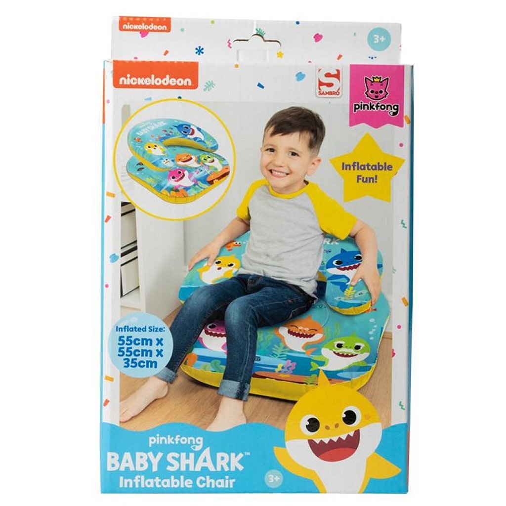 LeukeBaby Shark opblaasbare stoel van 55 x 55 x 35 cm. Geschikt voor kinderen vanaf 3 jaar.