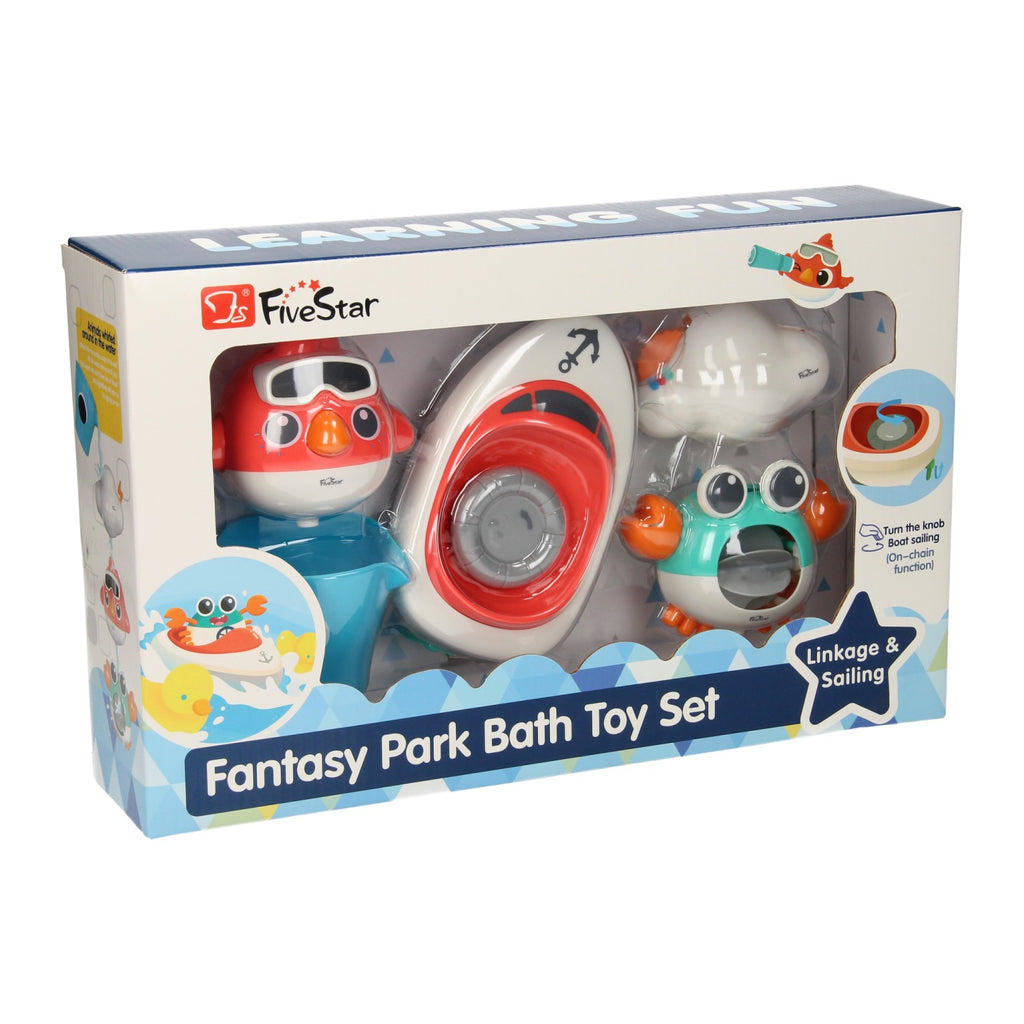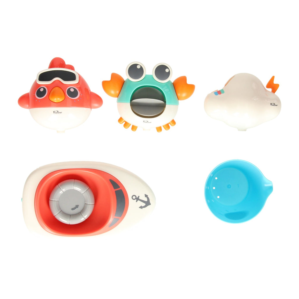 Speelset voor in bad met 6 figuren. 3 figuren met zuignap, 1 bekertje en een bootje. Geschikt voor kinderen vanaf 3 jaar oud.