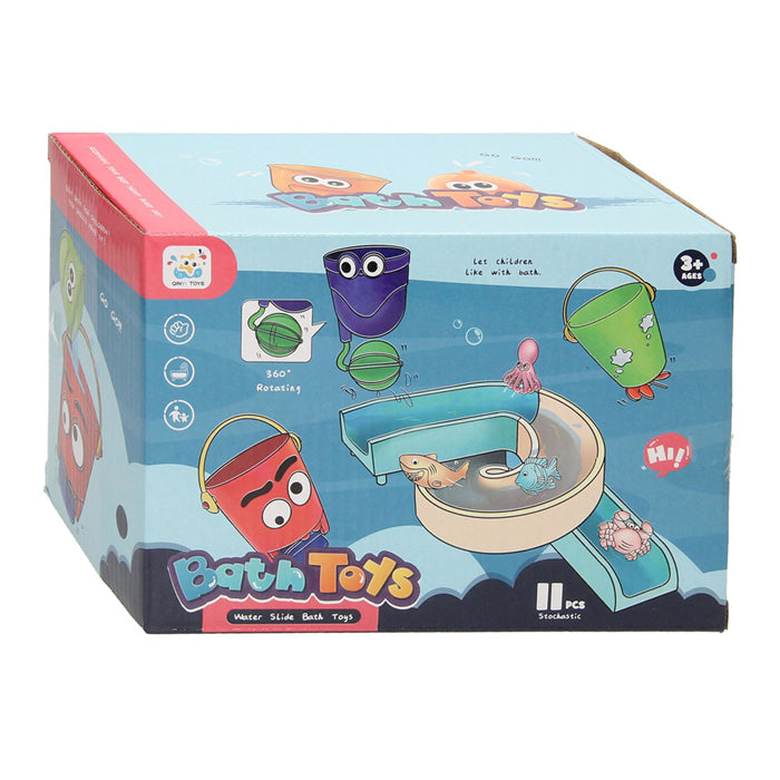 11-delige set voor het maken van een waterglijbaan in bad of onder de douche. Inclusief 4 zeediertjes. Geschikt voor kinderen vanaf 3 jaar oud.