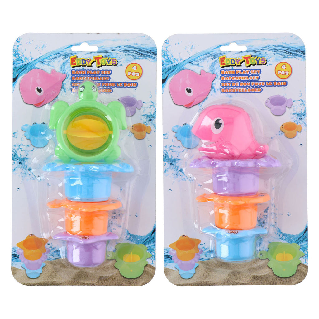 4-delige set met badbekers in de vorm van zeedieren. Geschikt vanaf 18 maanden.