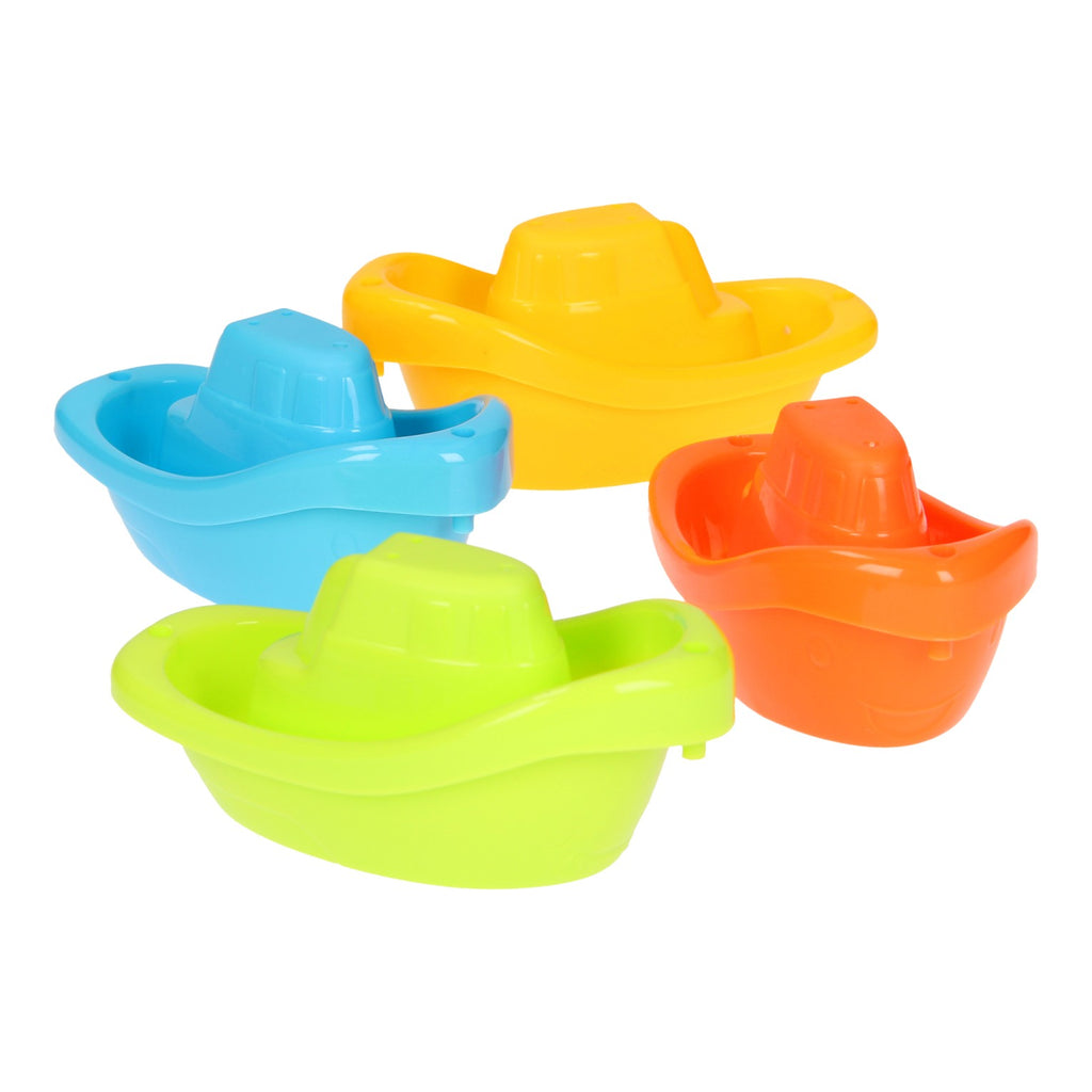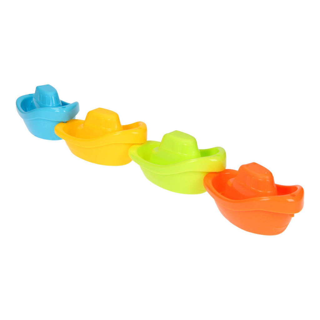 Beleef spetterende avonturen met deze 4 gekleurde bootjes van kunststof. Koppel de bootjes aan elkaar en je hebt een echte trein met bootjes. Voor uren water- en speel plezier! Geschikt voor kinderen vanaf 12 maanden.
