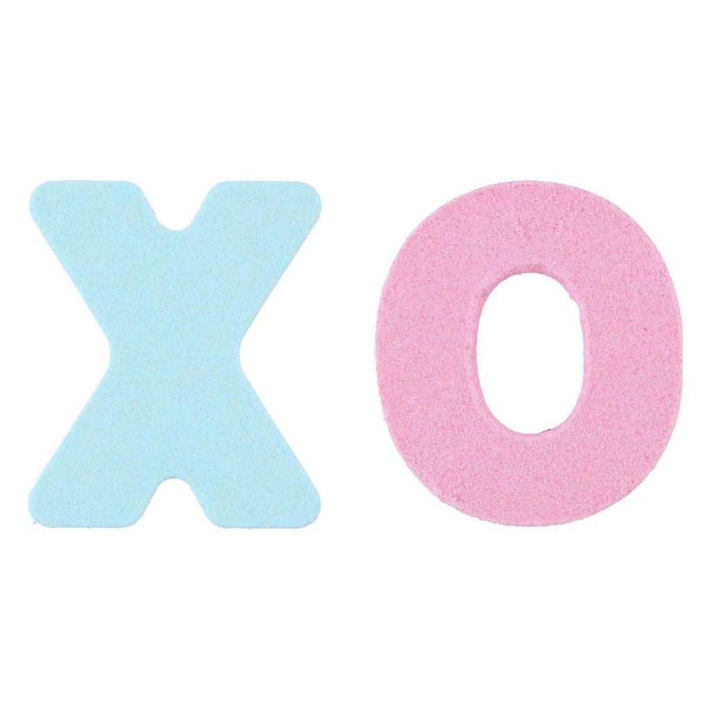 Een set van twee badproducten in een doorzichtige verpakking. De producten hebben zachte tinten roze en groen, ideaal voor een verfrissende badervaring.