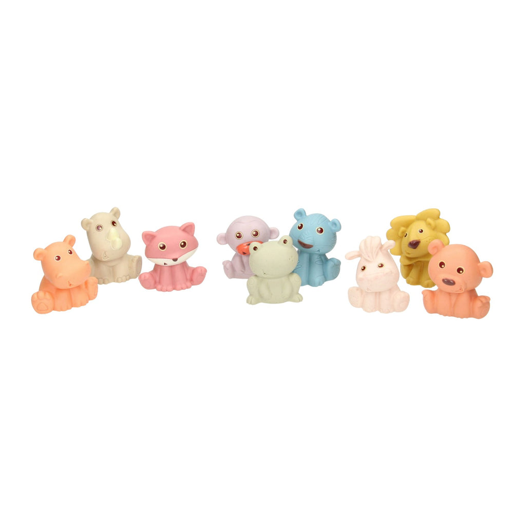 Set van 3 pastelkleurige baddieren in een netje. Geschikt voor kinderen vanaf 6 maanden oud.