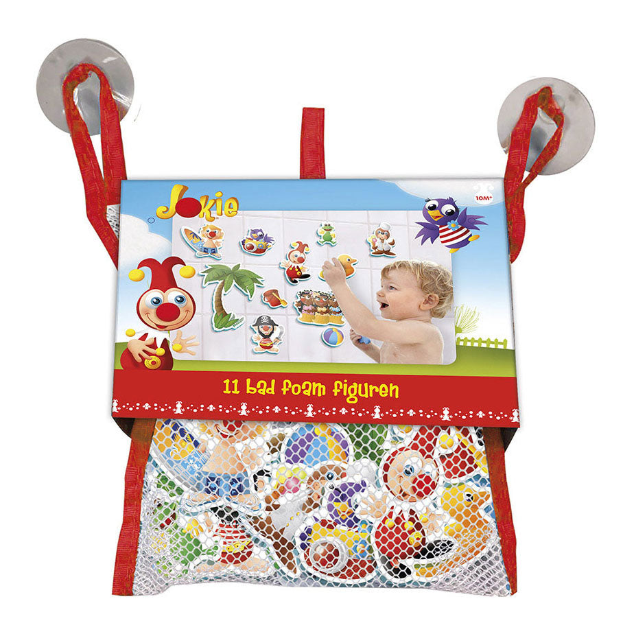 Set van 11 foamvormen voor in bad van Jokie, Jet en hun vriendjes. Inclusief waterbestendig ophangnet met zuignappen. Geschikt voor kinderen vanaf 12 maanden oud.
