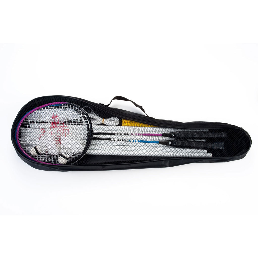 Iedereen heeft weleens zin in een stevig potje badminton. Met deze badmintonset heb je alles in huis om met 4 personen badminton te spelen. De badmintonset wordt geleverd met 4 rackets, 3 shuttles, 1 badmintonnet en 2 buizen (Ø 25 mm) om het badmintonnet te spannen. Wanneer je uitgespeeld bent bewaar je alle onderdelen in de handige bewaartas.