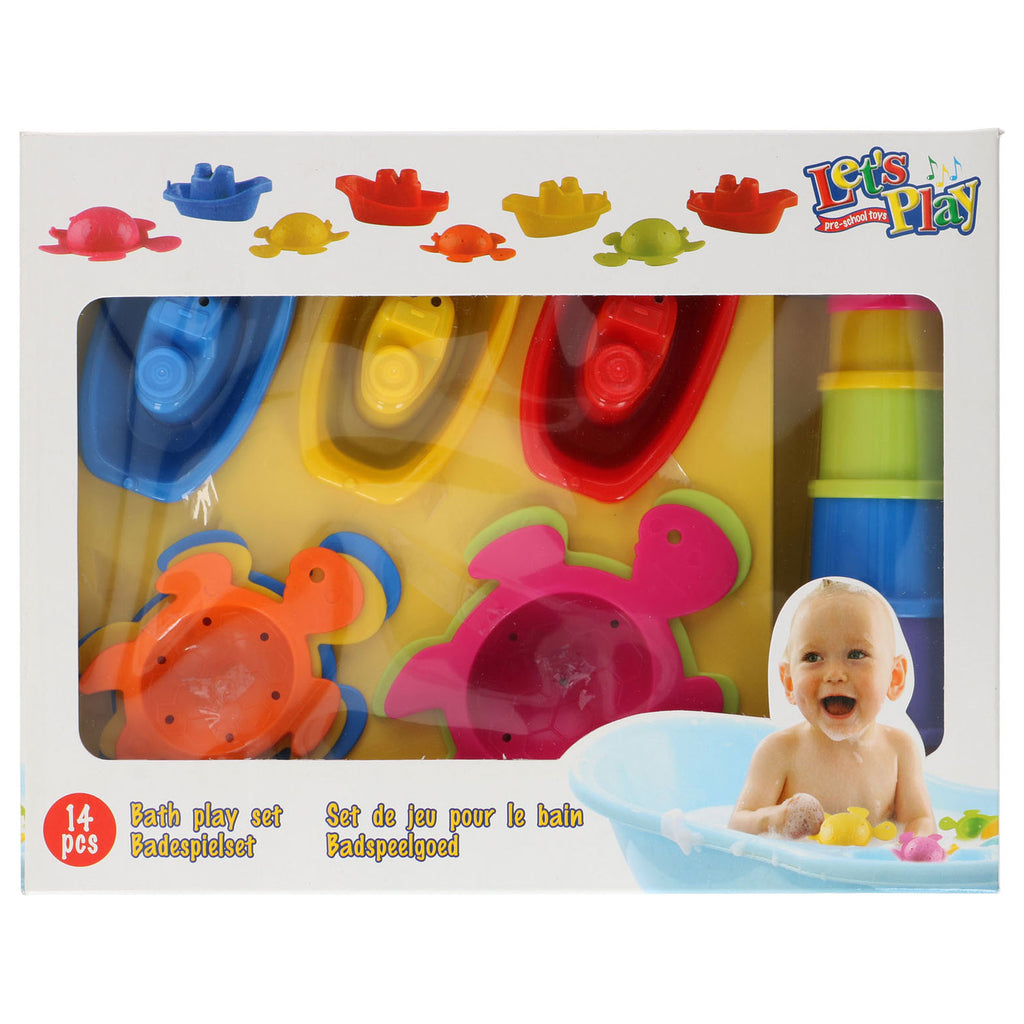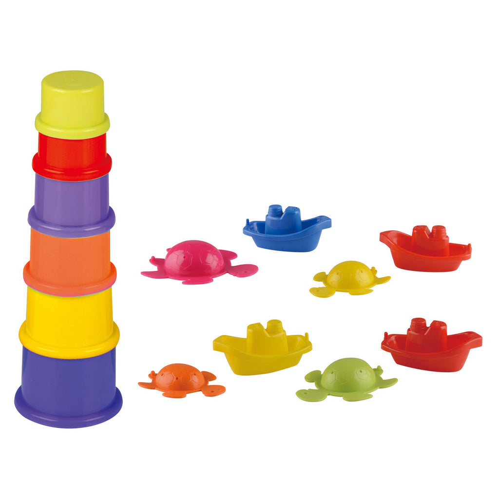Set bestaande uit 14 stuks badspeelgoed, bekertjes, schildpadden en bootjes. Geschikt voor kinderen van 12 maanden tot 3 jaar oud.