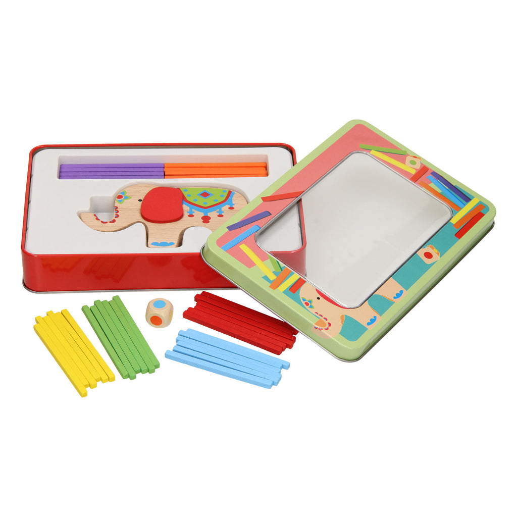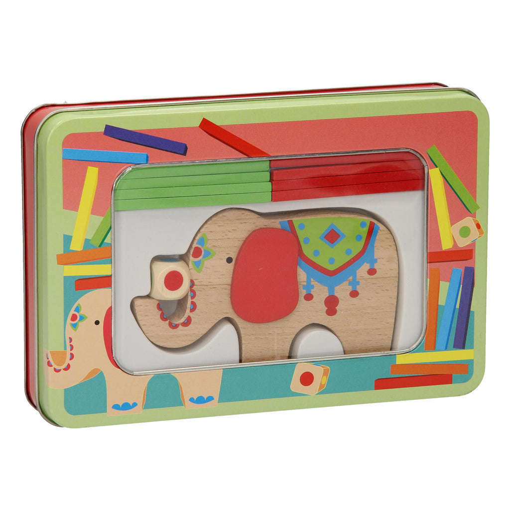 Inhoud: 1 houten olifant en verschillend gekleurde houten balans-stokjes. Geschikt voor kinderen vanaf 5 jaar.