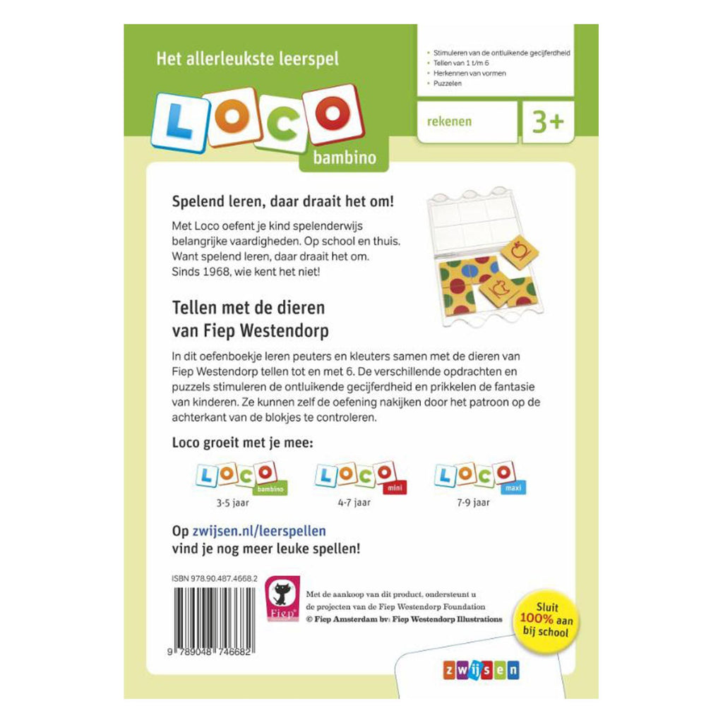 Leren tellen t/m 6 met de kleurrijke illustraties van Fiep Westendorp. Met vrolijke (dieren)puzzels ontdekken peuters en kleuters spelenderwijs cijfers en wordt de fantasie geprikkeld. Zelfcorrigerend.