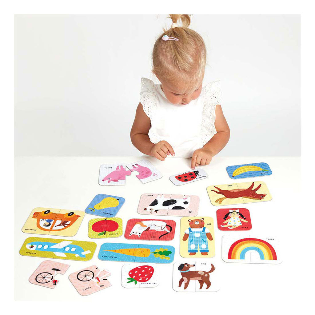 Hallo kleintjes, het is tijd voor jullie eerste puzzels! Educatieve puzzels zijn een geweldig cadeau-idee voor een nieuwsgierige peuter na zijn eerste verjaardag. De set bevat 18 grote, tweedelige puzzels - een geweldig begin van een puzzelavontuur. Mooie, kleurrijke afbeeldingen geven weer wat kinderen weten uit hun directe omgeving. In elkaar zetten is een uitdaging, maar elke match is een reden voor vreugde!