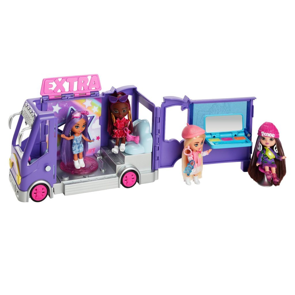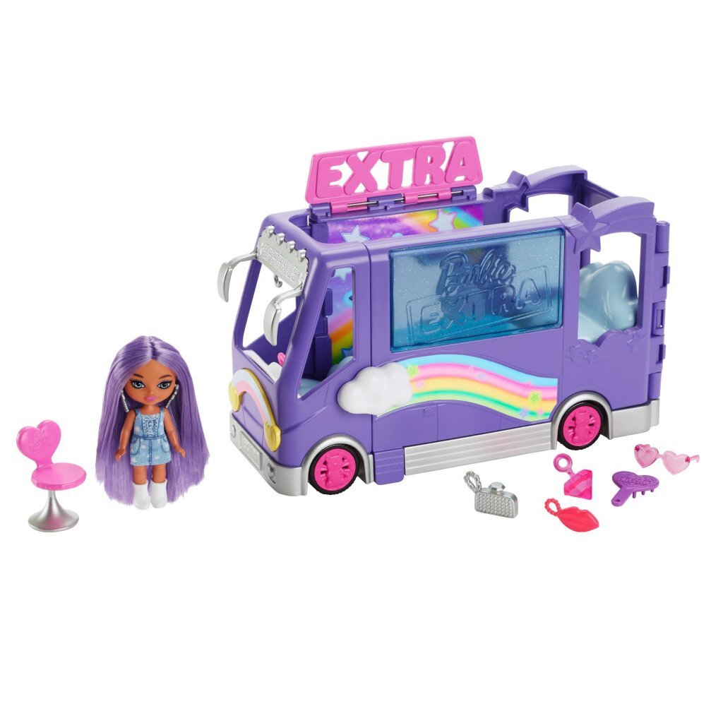 Barbie Extra Minimin Bus speelset met pop en accessoires. Geschikt voor kinderen vanaf 3 jaar.