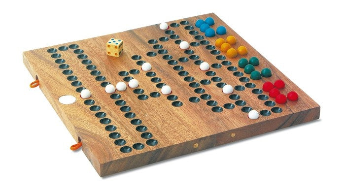 Super leuk voor jong en oud! Het spannende dobbelspel van stevig hout en met mooie gekleurde ballen is geschikt voor twee tot vier spelers. Wanneer hij niet in gebruik is, kan hij eenvoudig worden opgevouwen. Dus ook ideaal voor onderweg. Wie heeft de gave om dit spel te winnen en barricadeert de weg voor de andere spelers? Een bordspelklassieker die erg populair is bij jong en oud.