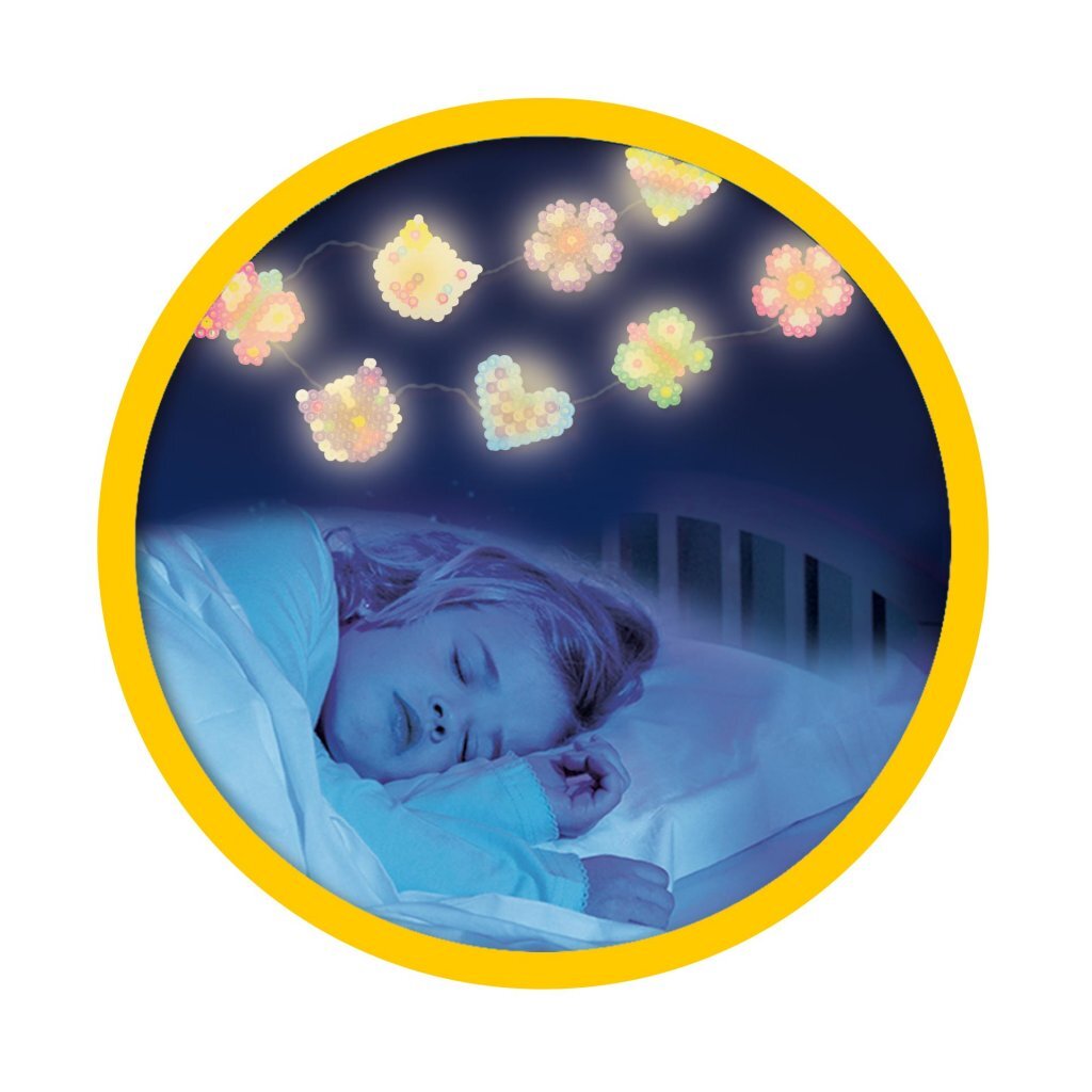 Wow, met deze set kun jij je eigen lichtslinger van strijkkralen maken. Met de bijgeleverde strijkkralen en legbordjes kun jij de mooiste figuren maken, zoals een kleurrijke vlinder of bloem. Maak de figuurtjes met foamtape aan de lichtjes vast en jouw li