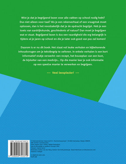 Daarom is er nu dit boek. Het staat vol leuke verhalen en bijbehorende inhoudsvragen om je tekstbegrip te oefenen. In enkele verhalen is een kort informatief stukje verwerkt: een krantenartikel, de spelregels van een spel... Op die manier leer je ook gewone informatie op een speelse manier te verwerken en begrijpen.