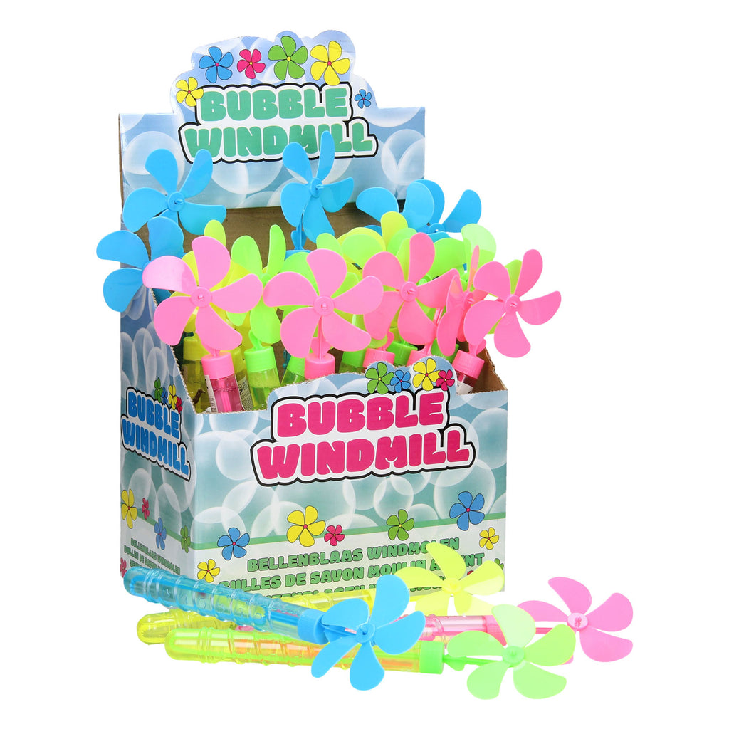 Laat de wind maar waaien tegen jouw Bellenblaas Windmolen! Niet alleen het molentje draait, ook jouw bellen worden hoog in de lucht getrokken! De Bellenblaas Windmolen is er in de kleuren roze, geel, groen en blauw. Hij wordt geleverd in een set van 24 stuks! Ideaal als traktatie of uitdeelcadeautje. Inhoud: 24 x 60 ml