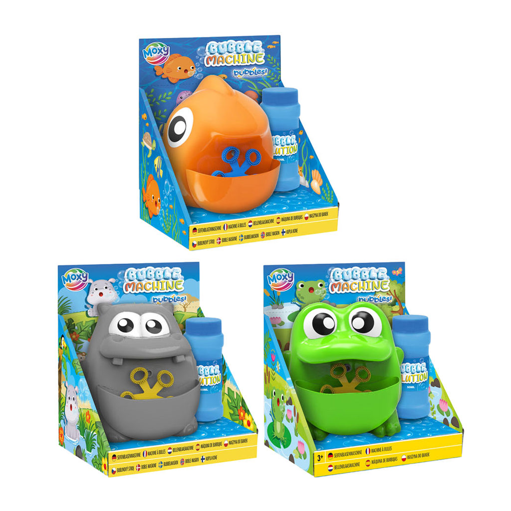 Bellenblaasmachine in de vorm van een dier (vis, kikker of nijlpaard). Inclusief 50 ml bellenblaas. Geschikt vanaf 3 jaar.