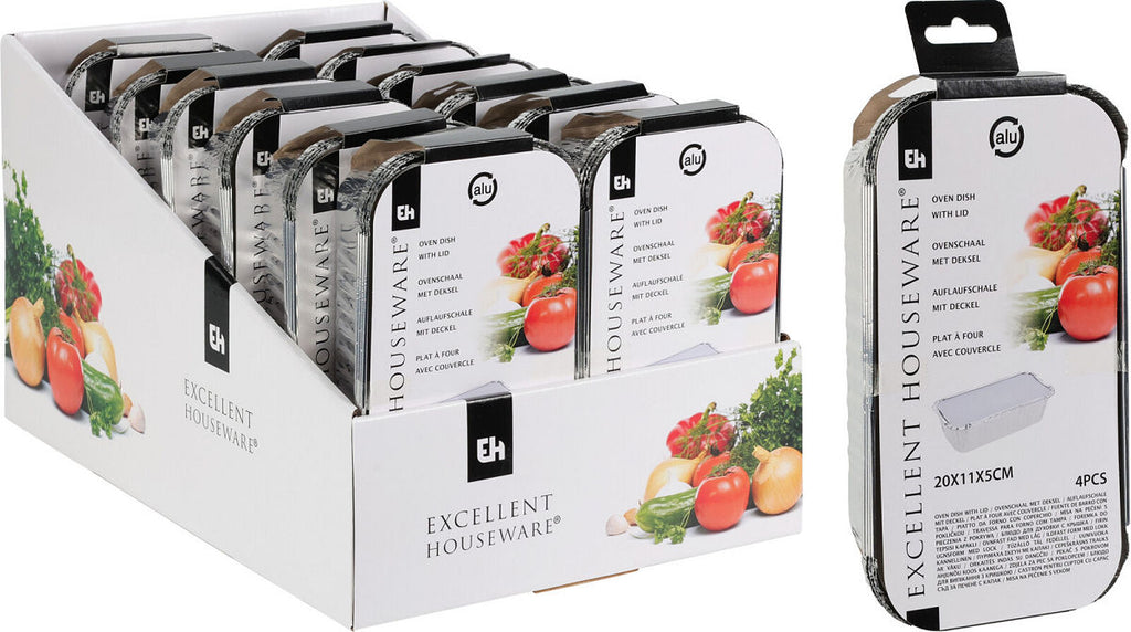 Bereidingsbak met deksel 20x11x5cm 4 stuks