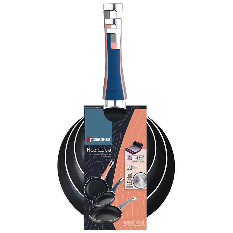 Chique koekenpannen van Bergner die erg onderscheidend zijn door de meerkleurige soft-touch handgrepen. De pannen zijn geschikt voor alle warmtebronnen, ook voor inductie.