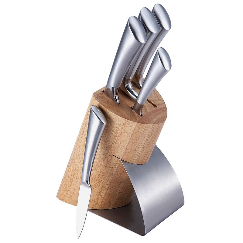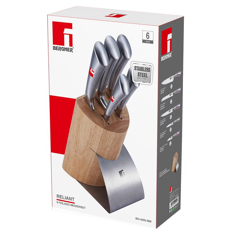 - Een prachtig houten messenblok met RVS bodem en voorzijde
