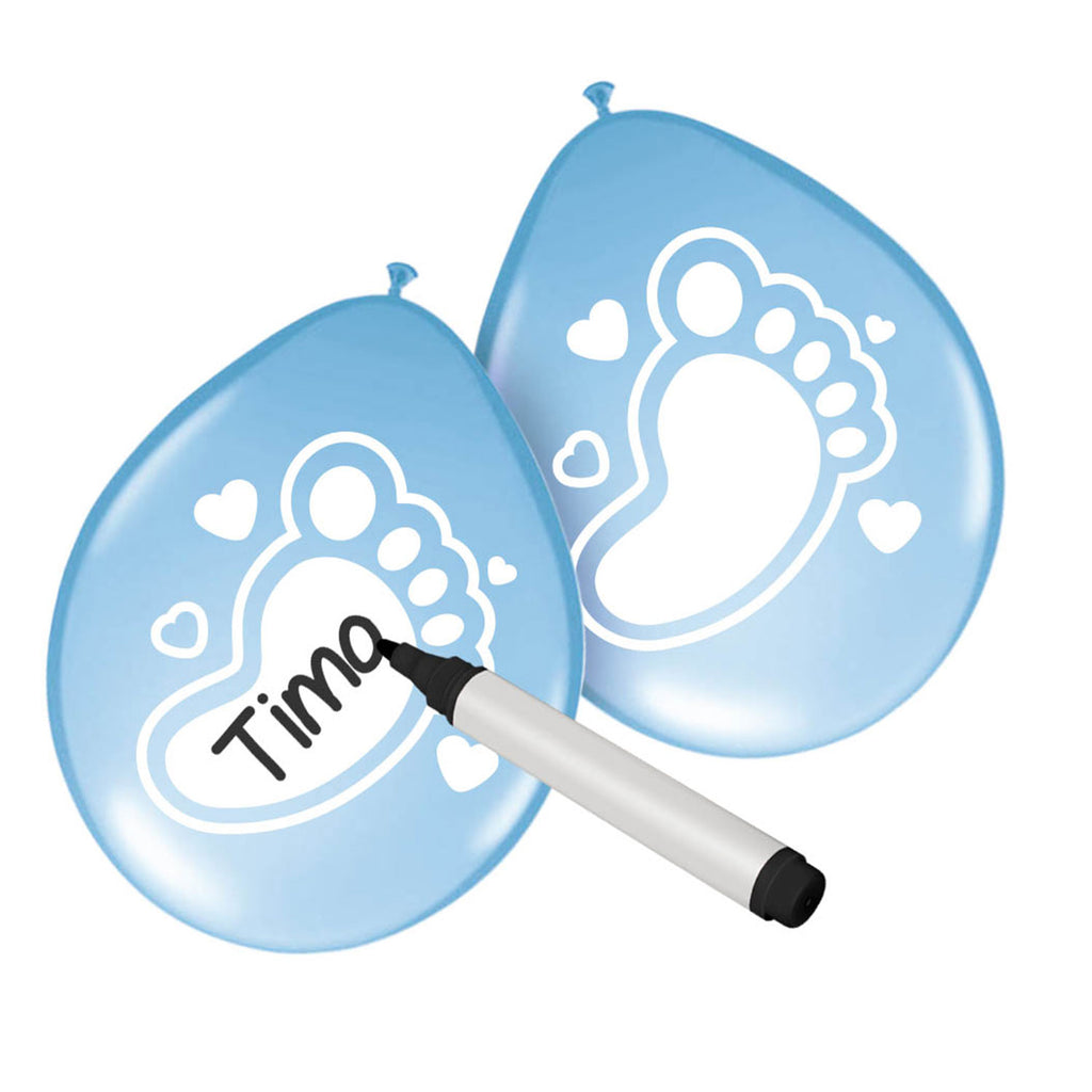De kleine vent is geboren en iedereen mag weten hoe hij heet! Deze 6 blauwe ballonnen zijn beschrijfbaar zodat je zijn naam en andere gegevens op de ballonnen kunt schrijven. Ook leuk om deze ballonnen te gebruiken wanneer jullie al voor de geboorte (tijdens de babyshower) zijn naam bekend maken.