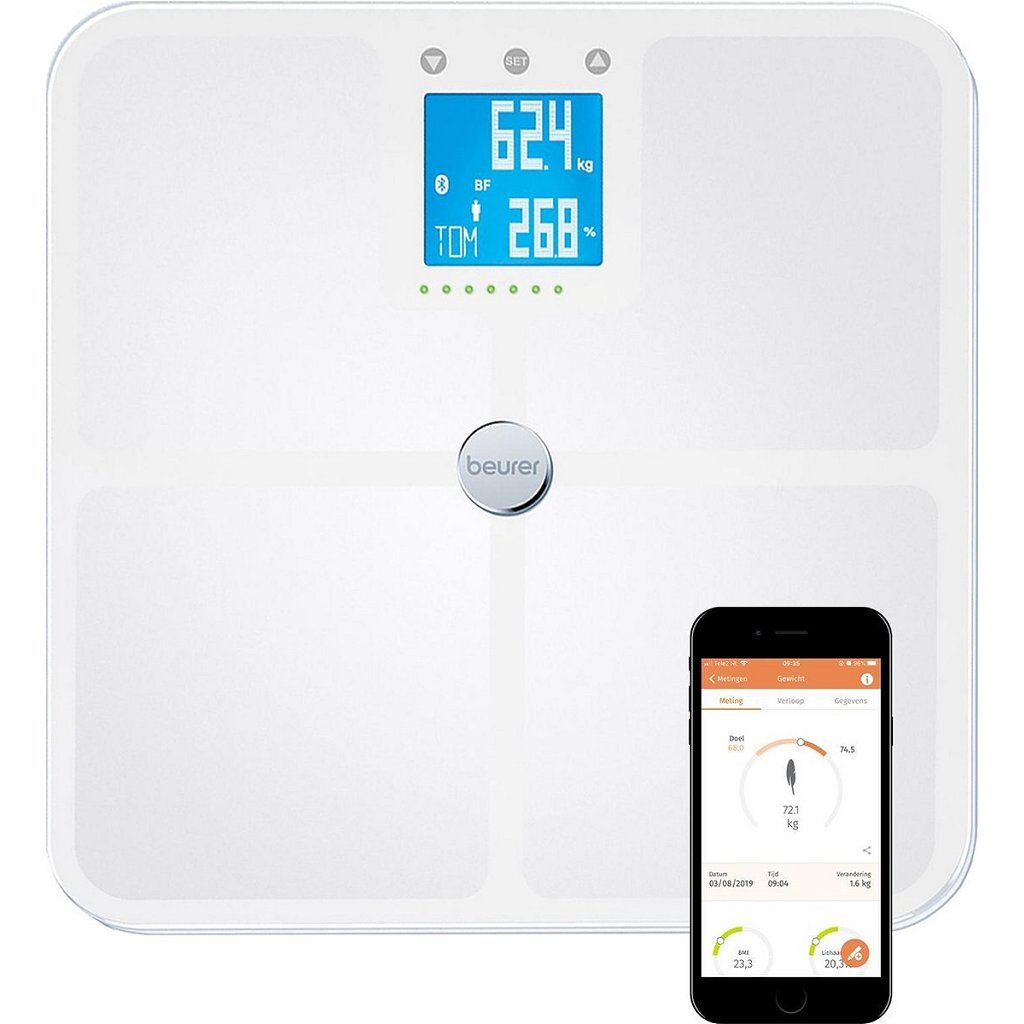 De Beurer BF950 is een diagnostische weegschaal. De weegschaal maakt een lichaamsanalyse van: gewicht, lichaamsvet, lichaamsvocht, spierpercentage, botmassa, AMR/BMR en BMI. De weegschaal heeft een zwangerschapsmodus voor een gecontroleerde gewichtstoename tijdens de zwangerschap. Door de bluetooth functie kan de weegschaal automatisch data verzenden als de HealthManager-app van Beurer is geopend op de smartphone of tablet.