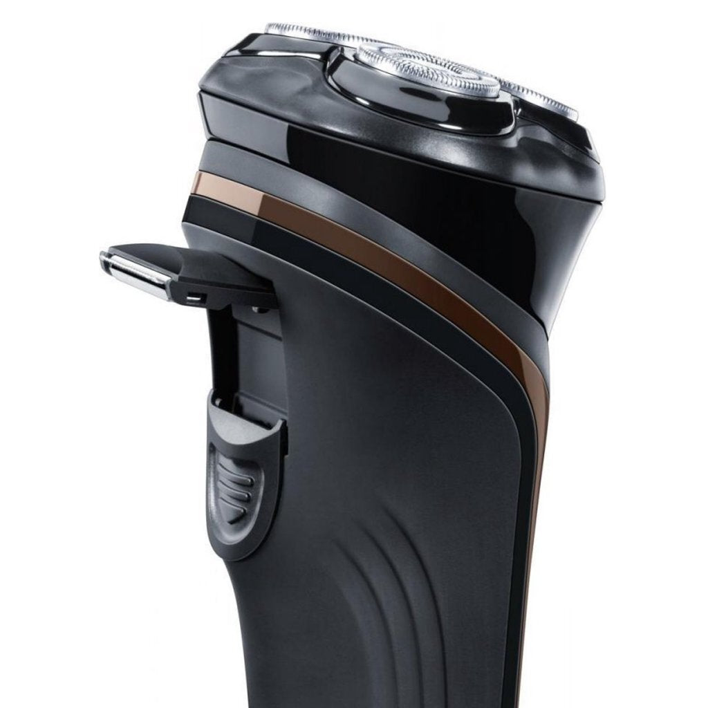 Met het praktische roterende scheerapparaat heb je een combinatie van scheerapparaat en stylingapparaat voor je baard.De scheerhoofden sluiten aan op de contouren van je gezicht en zorgen voor een schone en comfortabele scheerbeurt.De baard- en bakkebaardenstyler en de pop-up contourtrimmer maken extreem verschillende baardstijlen mogelijk.