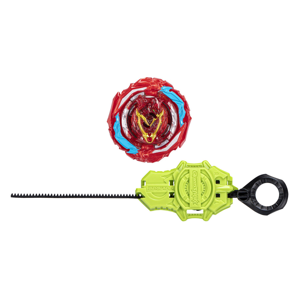 Met het Beyblade Burst QuadStrike Zeal Achilles A8-starterspack ga je op een nieuw niveau de strijd aan met Beyblade-draaitollen voor jongens en meisjes van 8 jaar. QuadStrike-tollen hebben verbeterde pantserpunten voor intensere gevechtsprestaties en het ontketenen van heviger aanvallen, om je tegenstander te verslaan tijdens een intenser gevecht! De tol kan op 4 verschillende manieren worden geconfigureerd, zodat je kunt kiezen uit 4 strategie?n, 4 manieren om aan te passen, 4 gevechtsstanden en 4 manieren om te winnen! Schat je tegenstander in en pas je tol aan, zodat je optimaal bent voorbereid om de strijd te winnen. Word de kampioen van de arena met de linksdraaiende Beyblade Burst QuadStrike Zeal Achilles A8 G10 QD02 TD15-Q B07-tol en launcher. Pas de tol aan naar Core- en Apex-modus voor verdedigings-type of naar Core+- en Apex+-modus voor balans-type. Laat de energie van QuadStrike-technologie los op je tegenstanders in het QuadStrike Beystadium (Beystadium is afzonderlijk verkrijgbaar, zolang de voorraad strekt). Scan de code op de tollen om een virtueel gevecht aan te gaan in de Beyblade Burst-app!